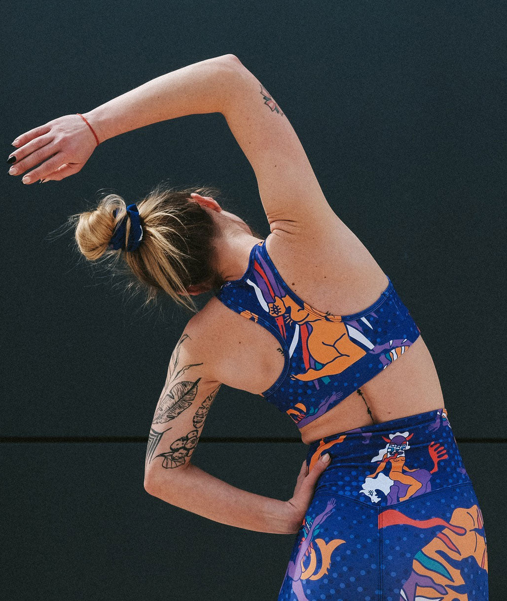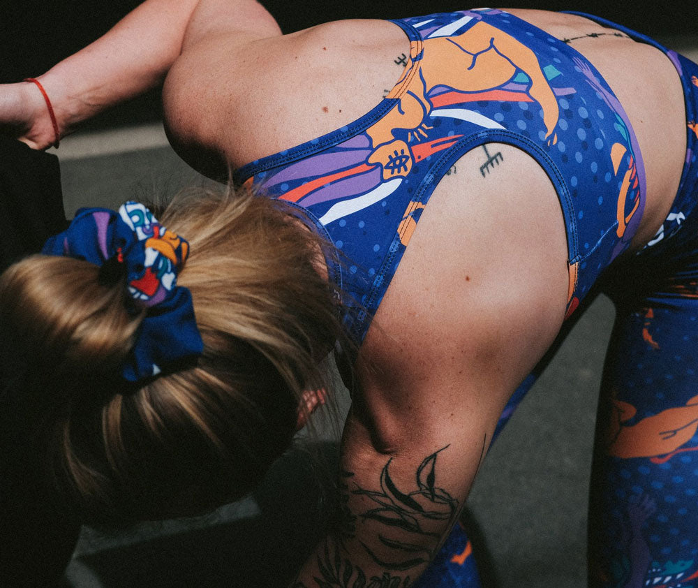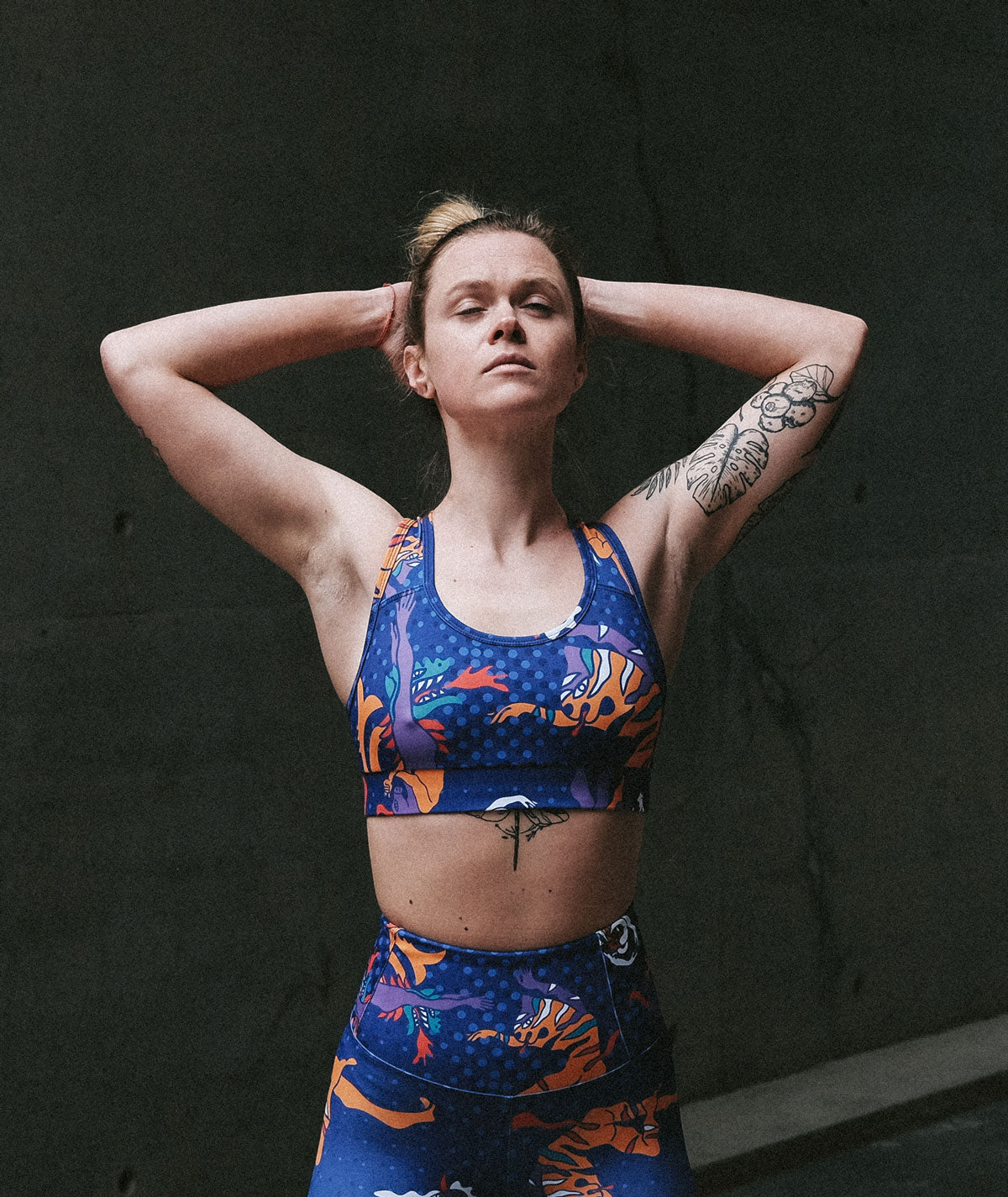 Дамско спортно бюстие, дизайнерски принт, ексклузивен спортен стил, ръчна изработка от Hellena за колекцията Superheroes