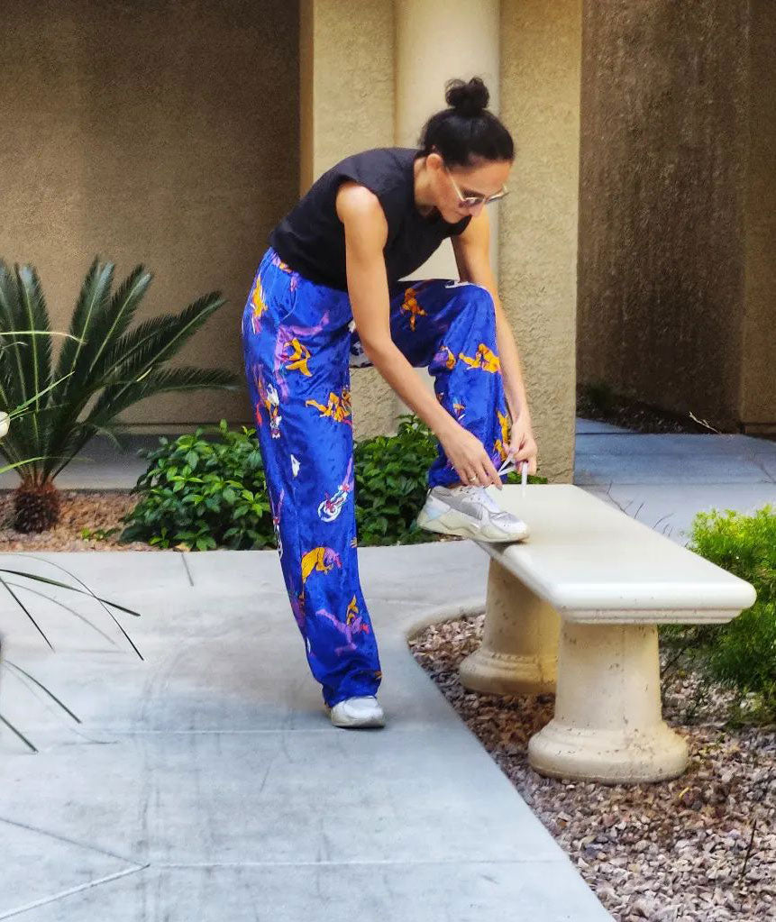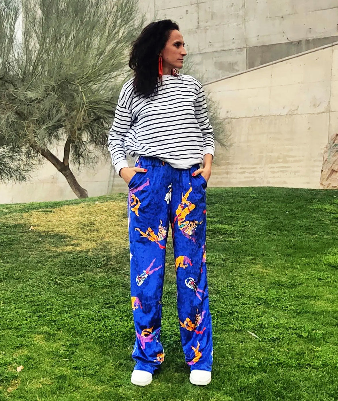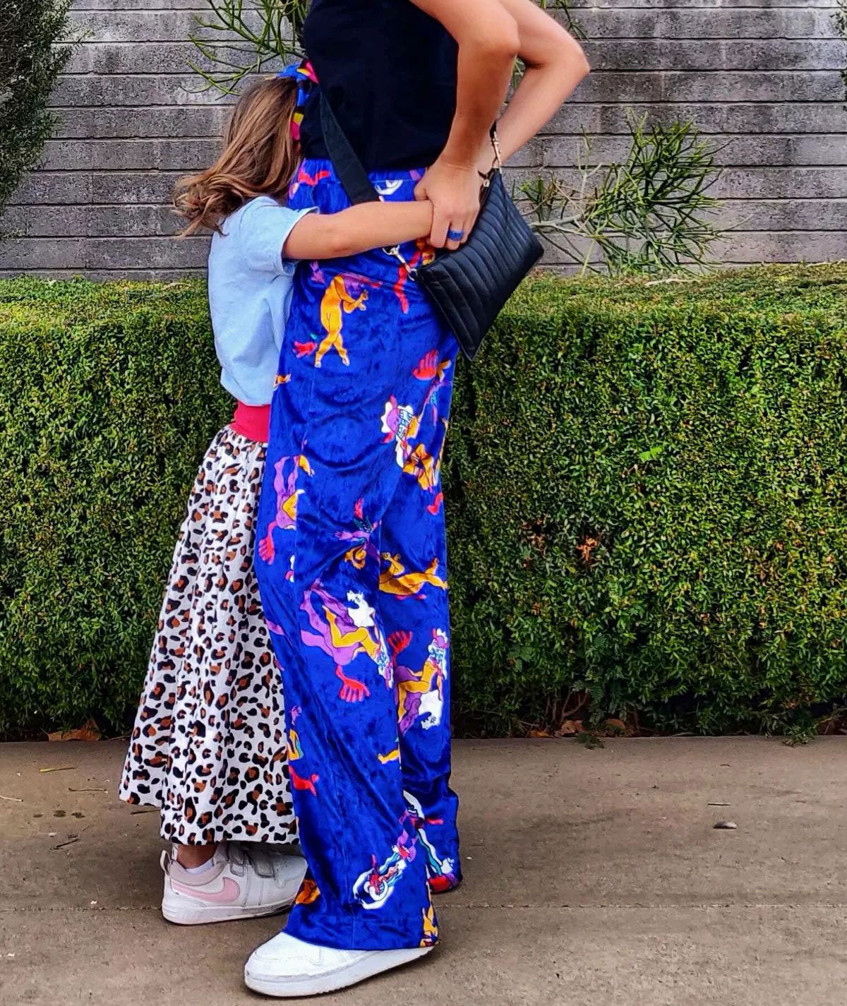 Дълги дамски панталони, дизайнерски принт, ексклузивна плюшена материя, ръчно изработени от Hellena за колекцията Superheroes