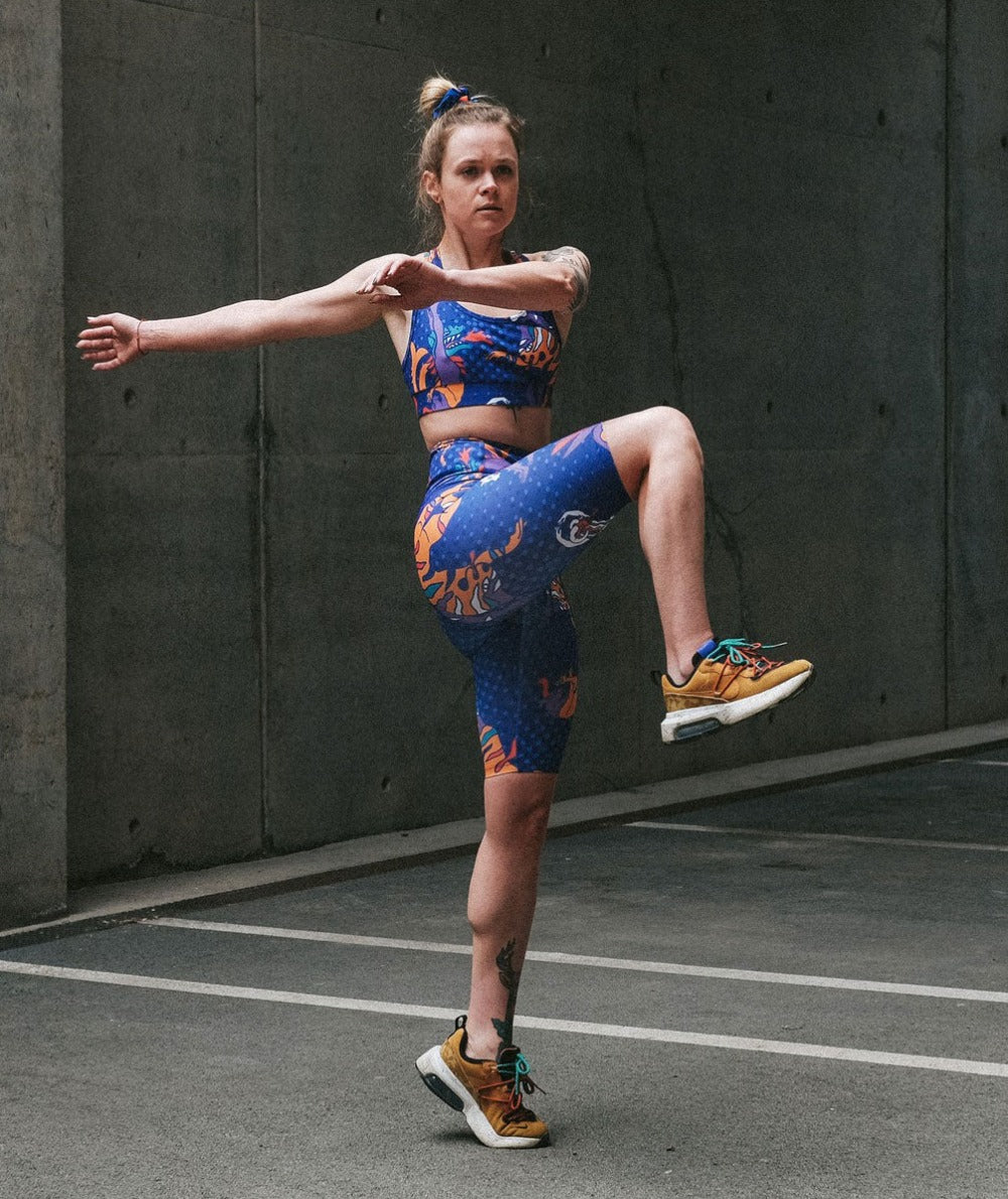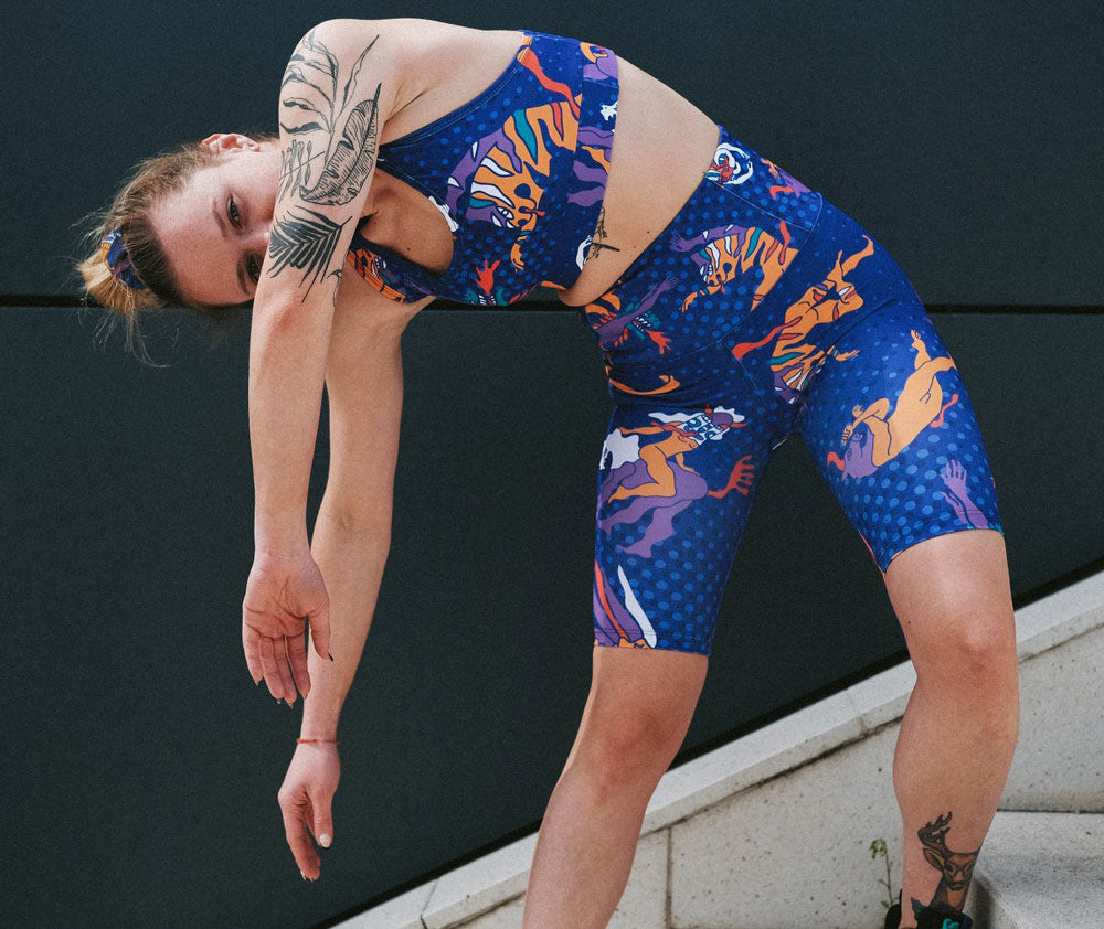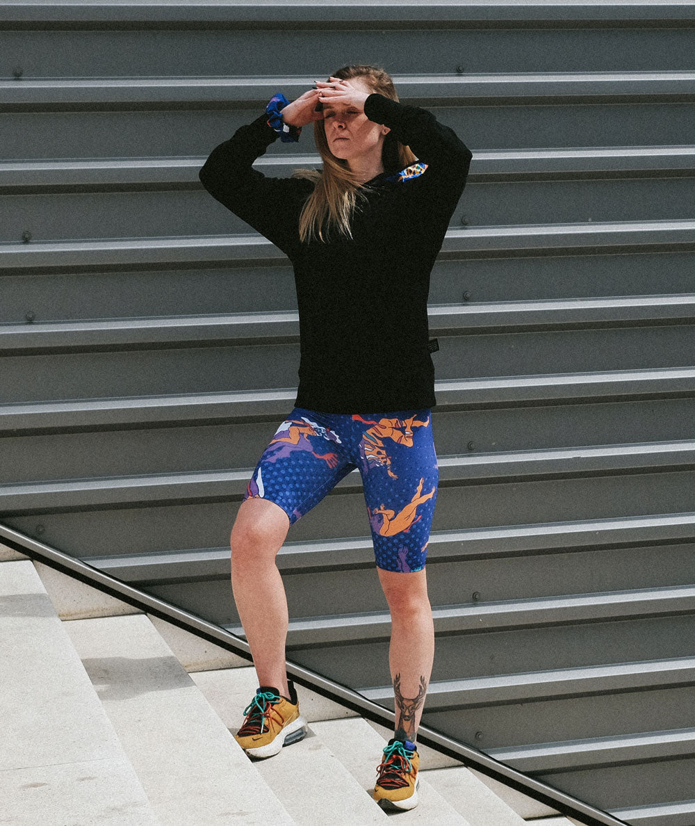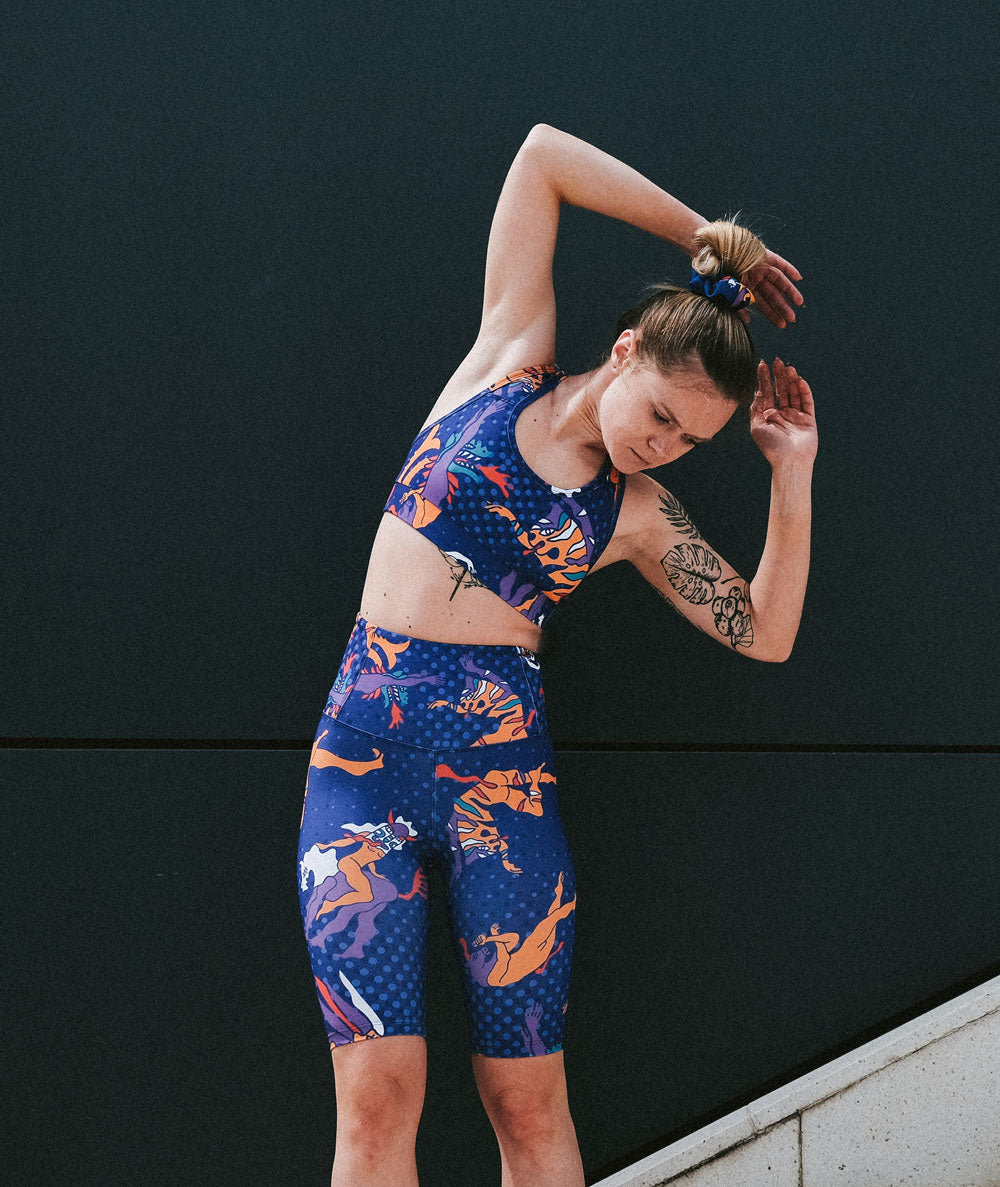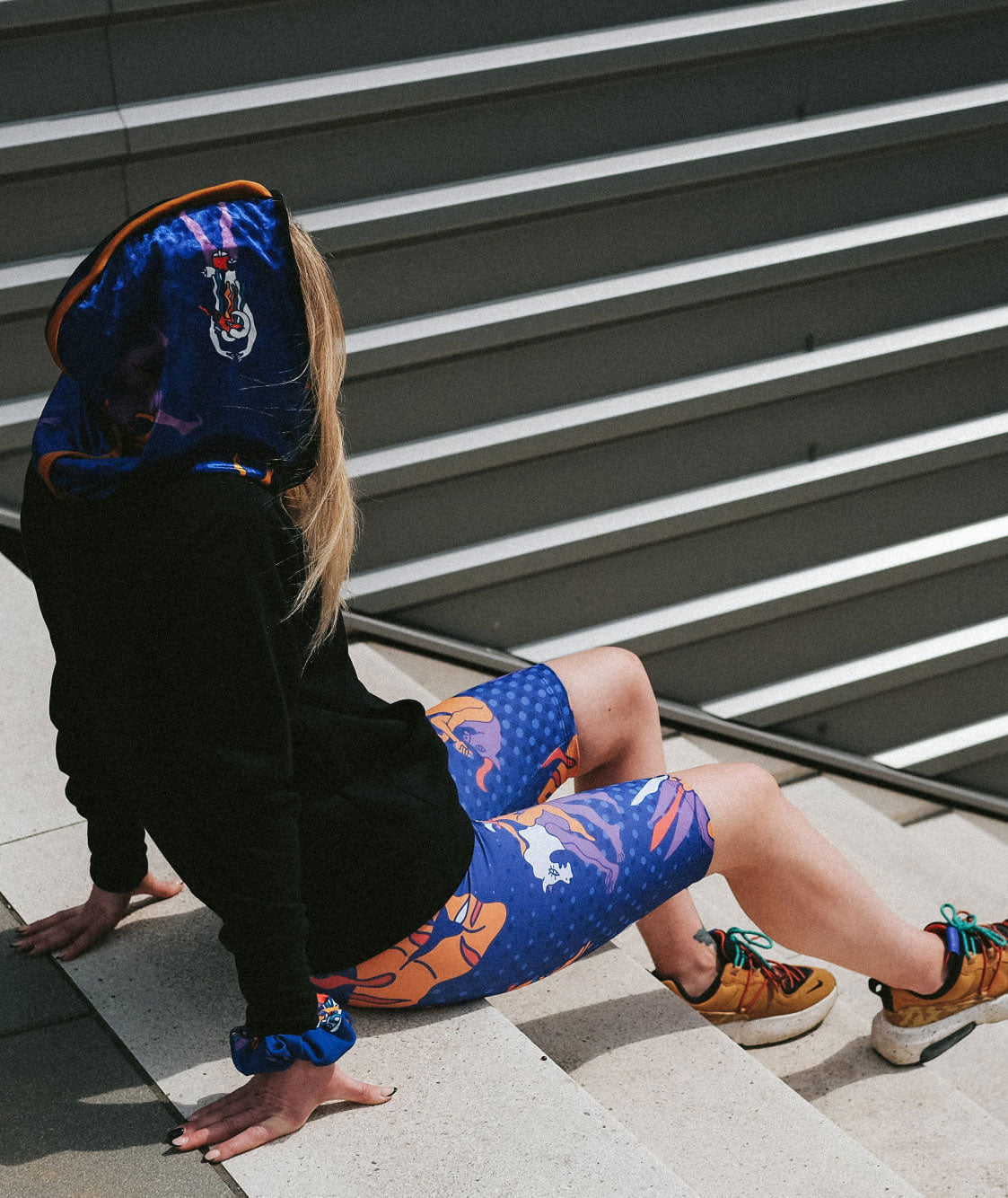 Дамски спортен къс клин, дизайнерски принт, ексклузивен спортен стил, ръчна изработка от Hellena за колекция Superheroes