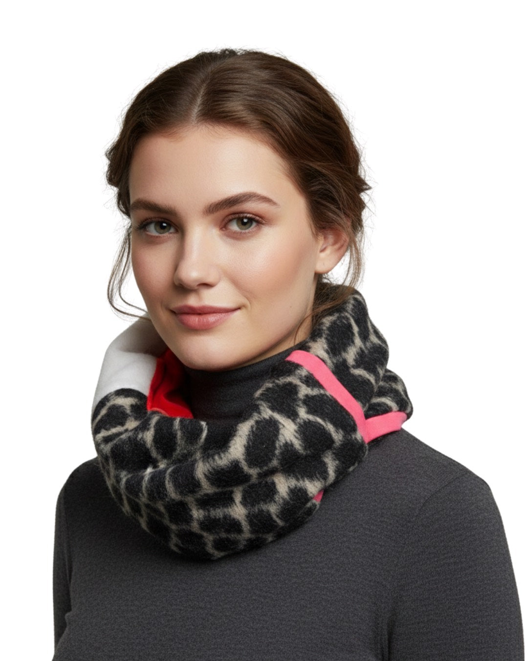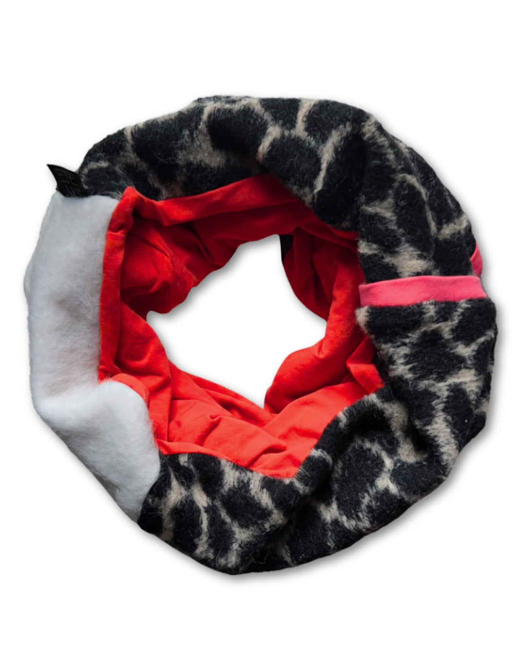 Crafting:  Designed and handmade by Artelie - long, cozy and warm reversible scarf  Unique design created in limited series Model:  Double-faced, collar scarf - wear on both sides Wear as a collar and pull up as a hood (it’s huge enough) Spacious, warm, comfortable Christmas Gift favorite Material:  Warm wool knitted fabric in giraffe print, combined with very soft pale...